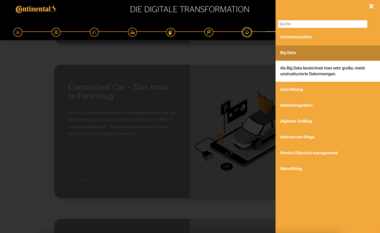 Ende 2020 wurden die vom Innovationszentrum für Industrie 4.0 (i40.de) in enger Zusammenarbeit mit dem Continental Institut für Technologie und Transformation (CITT) entwickelten Lernmodule rund um Digitale Transformation und Industrie 4.0 für 40.000 Lernende deutschlandweit ausgerollt, in den Sprachen Deutsch und Englisch. Ziel des Lernprojektes ist es, alle Mitarbeitenden von Continental systematisch darauf vorzubereiten, sich in einer digitalen Welt souverän zu bewegen und digitale Innovationen konzernweit voranzutreiben. Dieses Angebot richtet sich an alle Mitarbeitenden - von der Produktion bis zum Management. Für die Entwicklung der Lernmodule bekam i40 Zugang zu fachspezifischen Ansprechpartnern, um im iterativen Entwicklungsprozess den direkten Bezug zu operativen bis hin zu strategischen Continental-spezifischen Use Cases sicherzustellen.