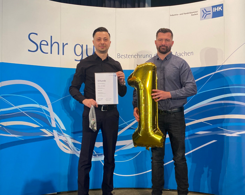Lobende Worte fand auch CITT Trainer Michael Jansen: „Über die Nachricht, dass der beste Maschinen- und Anlagenführer im Aachener Raum aus dem CITT kommt, hat sich das ganze Team gefreut. Das war eine super Leistung von Deniz und wir sind sehr stolz auf ihn!“